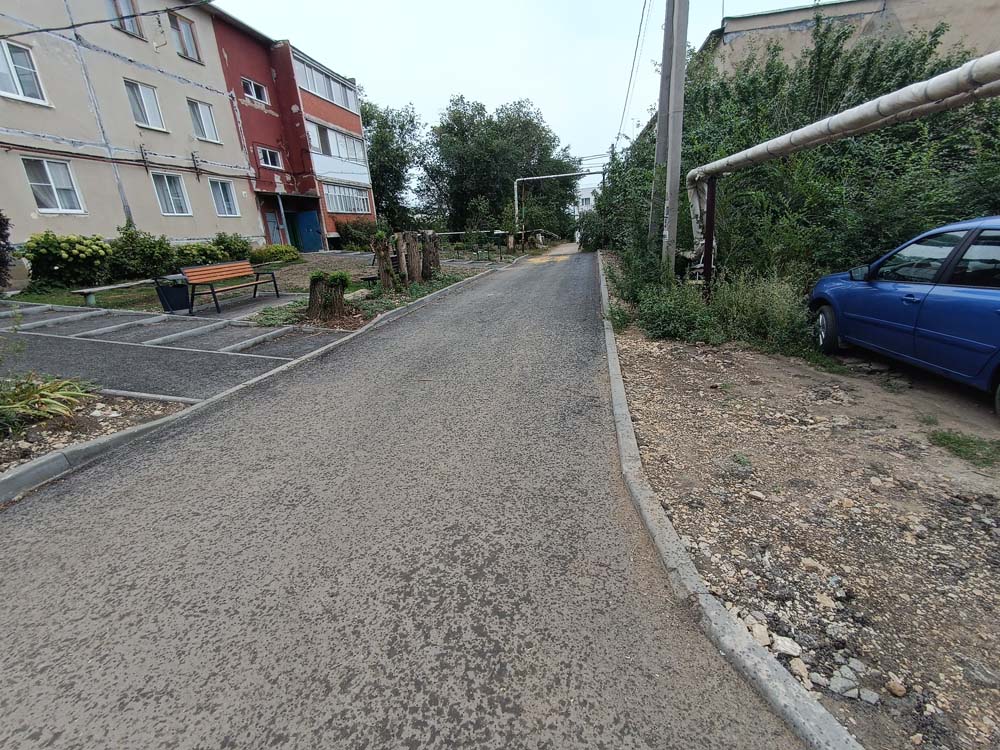 Сотрудники «Дорожного контроля» в ходе проверки отремонтированных территорий были приятно удивлены качеством ремонта дворов в поселке Расково Гагаринского района Саратова. Здесь были отремонтированы дворы 10-ти домов. К качеству укладки асфальта в них при этом не возникло ни одной претензии. Не было обнаружено ни очагов выкрашивания, ни неровностей покрытия, ни, тем более, выбоин.