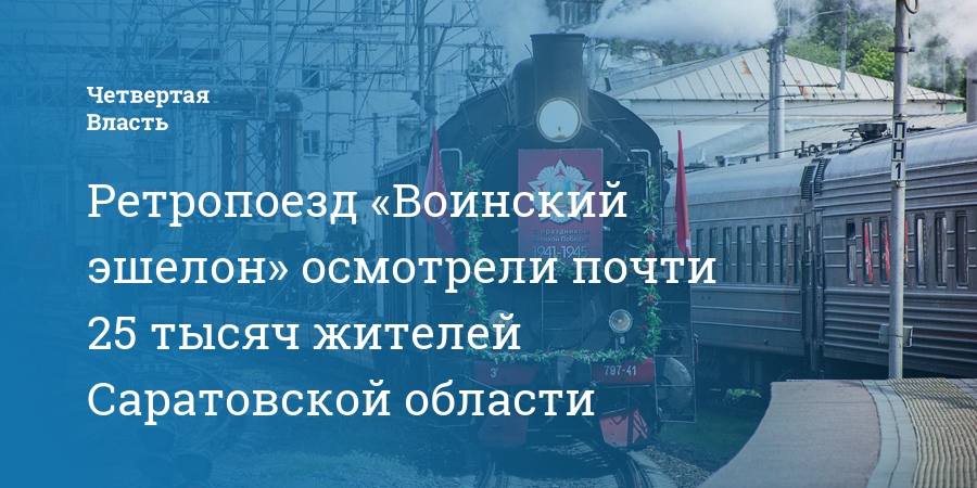 С 15 по 28 мая ретропоезд «Воинский эшелон», сформированный на Приволжской железной дороге, посетил 15 железнодорожных станций, расположенных на территории Саратовской области. За время праздничного тура, приуроченного к 80-летию Победы в Сталинградской битве, уникальный состав осмотрели почти 25 тыс. саратовцев и гостей региона.