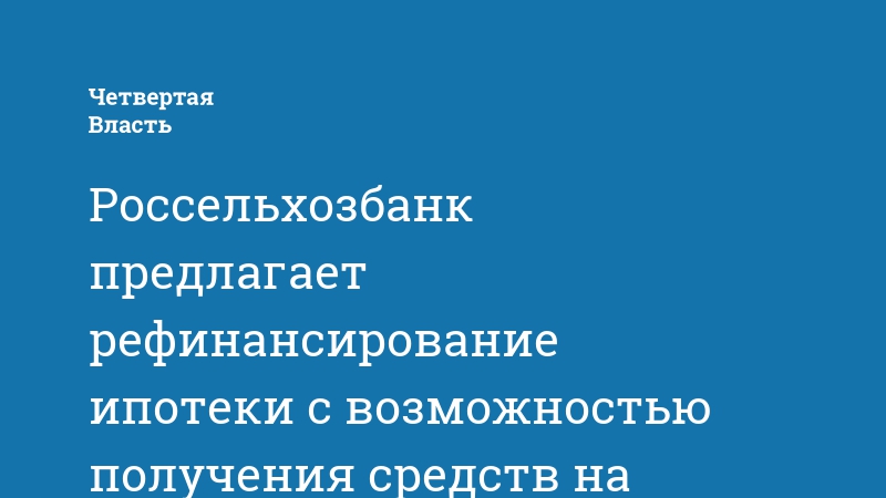 Россельхозбанк предлагает рефинансирование ипотеки с возможностью получения средств на личные нужды