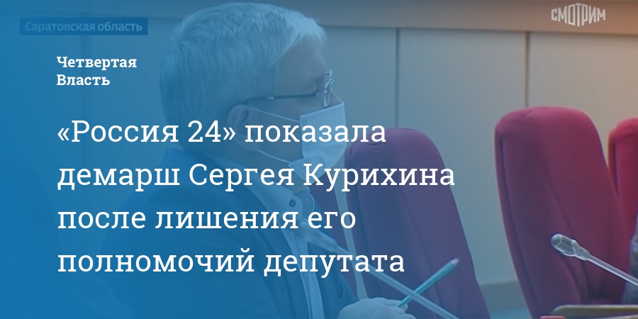 24 ноября на телеканале «Россия 24» в эфире «Дежурной части» рассказали о демарше депутата Саратовской областной думы Сергея Курихина, которого досрочно лишили полномочий на заседании парламента. Как и прежде, он отказался как-либо комментировать потерю мандата и информацию о возможном криминальном прошлом.