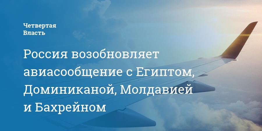 Из Российской Федерации возобновляется авиасообщение в курорты Египта, Доминиканы, Молдавии и Бахрейна. Об этом сегодня, 9 августа, сообщает ТАСС со ссылкой на решение федерального оперштаба.