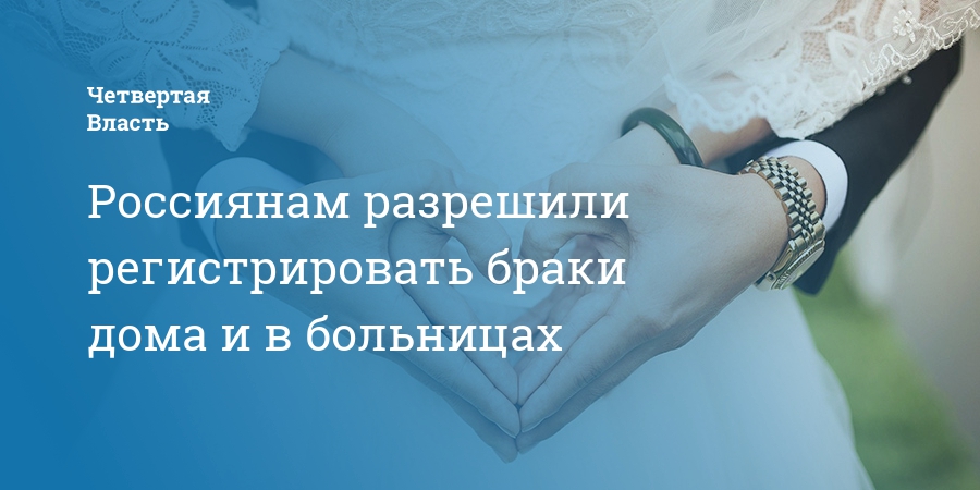Соответствующее разрешение ЗАГСам дал Минюст. Регистрировать браки дома и в медучреждениях можно будет, согласно семейному кодексу, при угрозе жизни невесты или жениха, беременности или рождении ребенка.