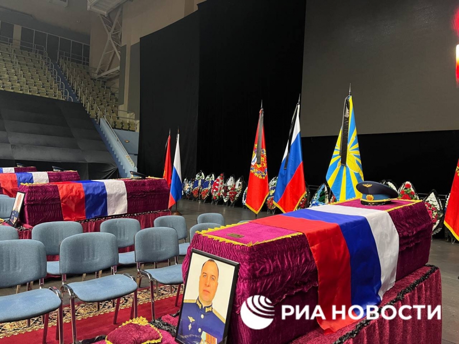 Прощание проходит со всем экипажем, в числе которого летчик из Балашова Саратовской области Владислав Чмирев. После церемонии предполагается направить останки погибших в места захоронения, которые определили родственники героев.