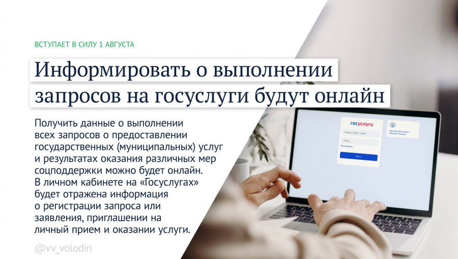 Получить данные о выполнении всех запросов о предоставлении государственных (муниципальных) услуг и результатах оказания различных мер соцподдержки можно будет онлайн в личном кабинете на «Госуслугах».