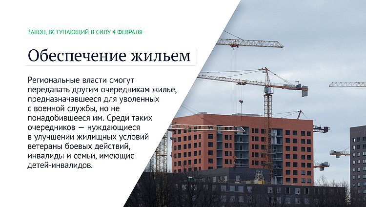 С 4 февраля региональные власти смогут передавать другим очередникам (ветеранам, инвалидам) жилье, которое предназначалось для уволенных с военной службы.