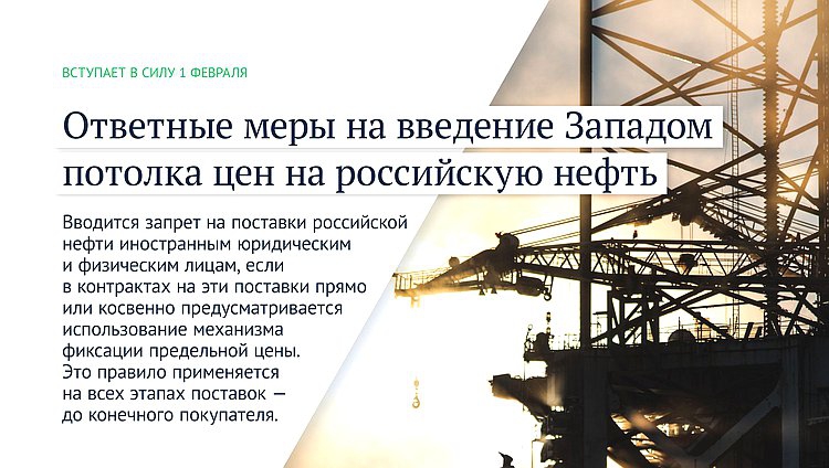 Помимо этого, введен запрет на поставки российской нефти иностранным юридическим и физлицам, если при покупке предельная цена фиксируется ими.