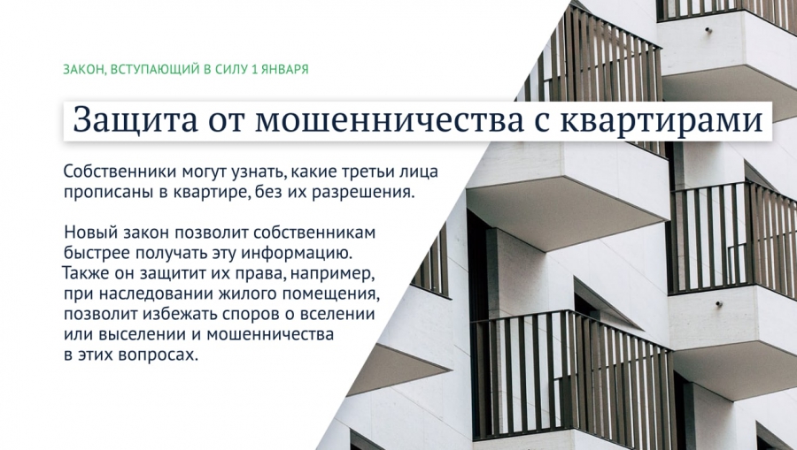 Во избежание мошенничества с квартирами собственники смогут быстрее узнавать о том, какие третьи лица прописаны в их жилье. Закон поможет избежать споров и мошенничества при наследовании квартиры.