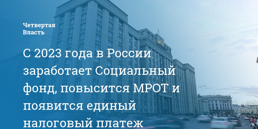 С 2023 года в России заработает Социальный фонд, повысится МРОТ и появится единый налоговый платеж