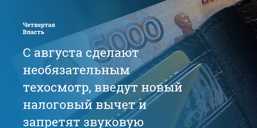 С августа сделают необязательным техосмотр, введут новый налоговый вычет и запретят звуковую рекламу