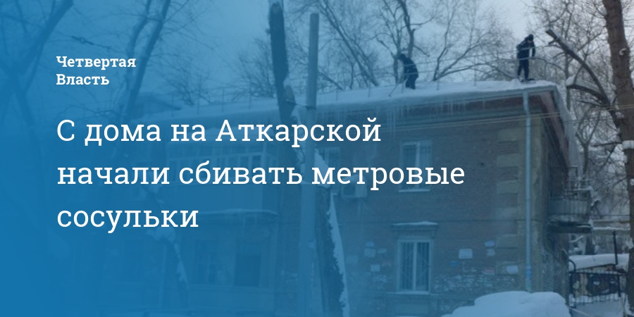 С дома на Аткарской начали сбивать метровые сосульки