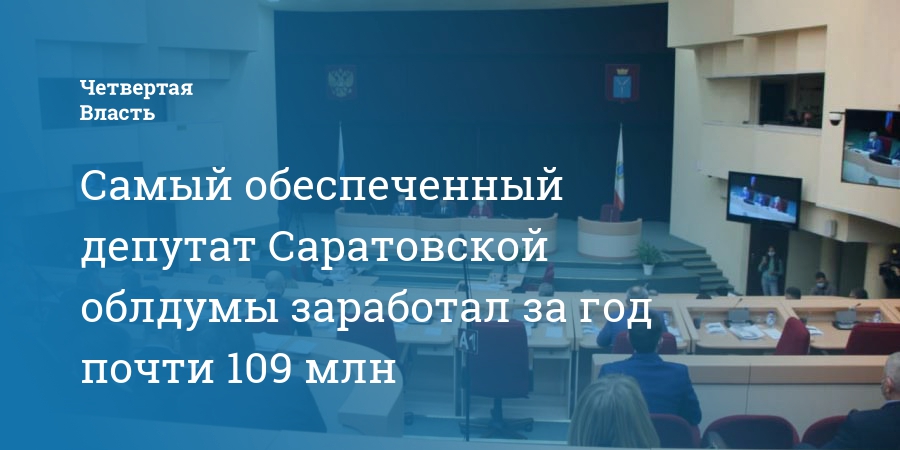 Самый обеспеченный депутат Саратовской облдумы заработал за год почти 109 млн