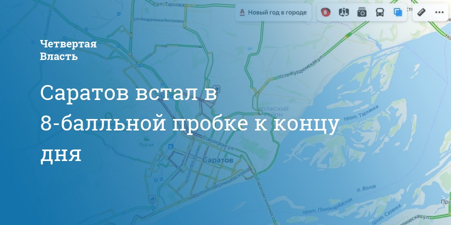 К концу рабочей неделе в Саратове наблюдаются 8-балльные пробки, таковы оценки «Яндекс. карты».