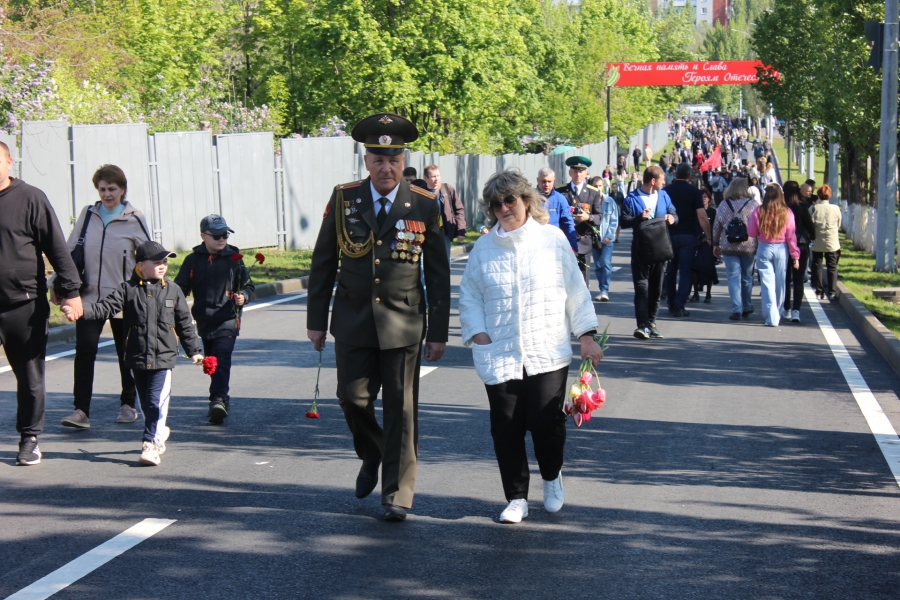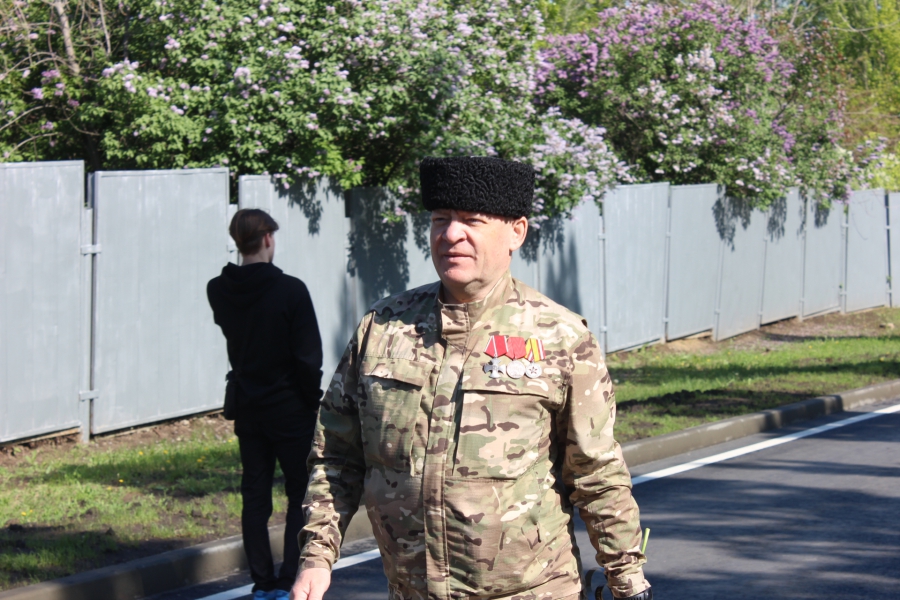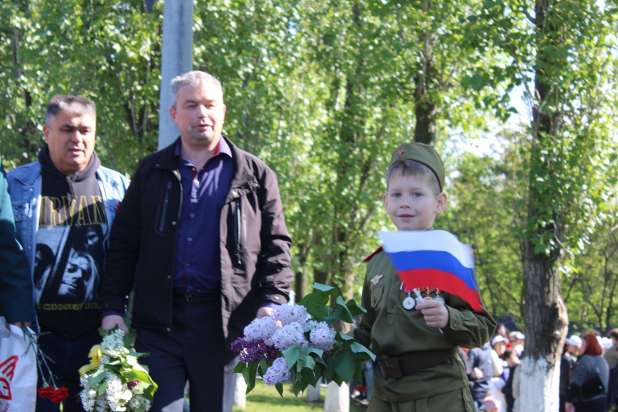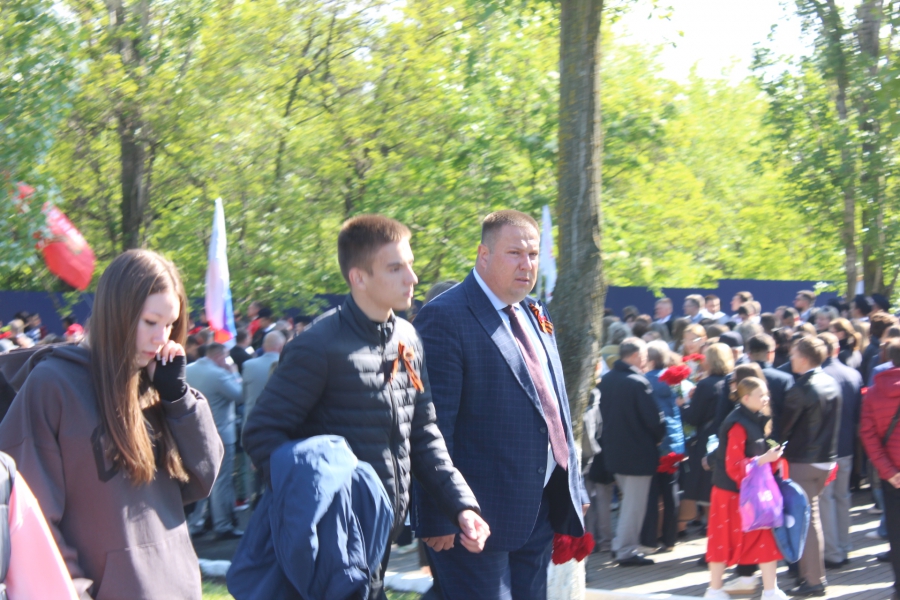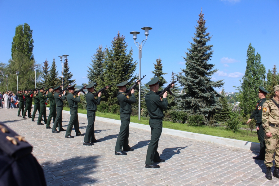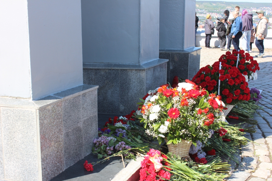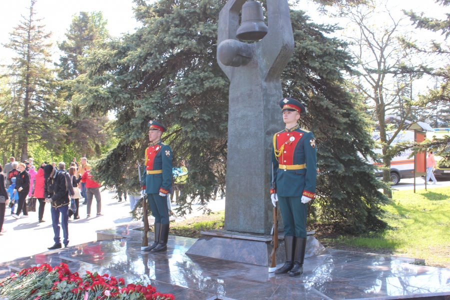 Затем прошла минута молчания в знак памяти, тех, кто погиб на фронте и в специальной военной операции и, под выстрелы воинского салюта, началось возложение цветов к Вечному огню.