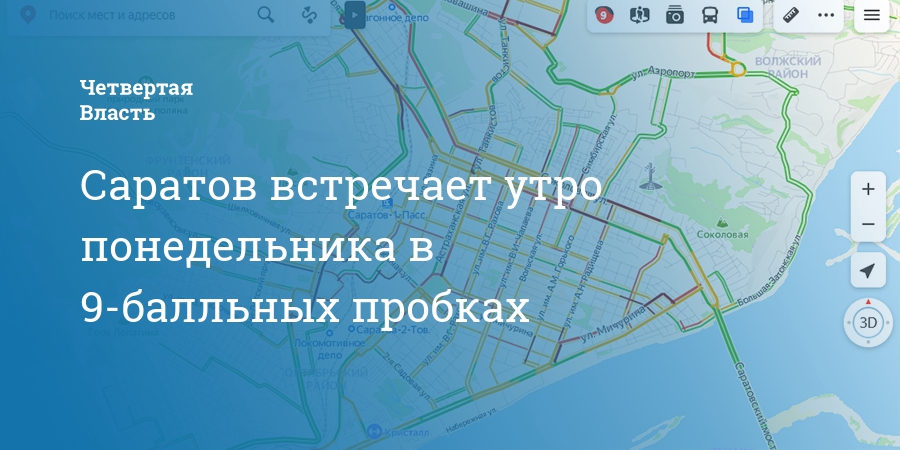 В эти минуты Саратов стоит в глухих пробках. Как сообщает приложение «Яндекс», ситуация затруднена на 9 баллов из 10.