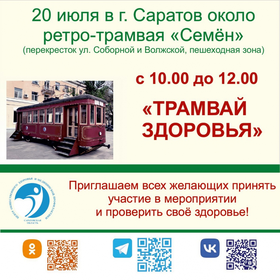Мероприятие организуется в рамках проекта «Трамвай здоровья» по инициативе государственного учреждения здравоохранения «Саратовский областной центр общественного здоровья и медицинской профилактики» при поддержке регионального минздрава и администрации города.