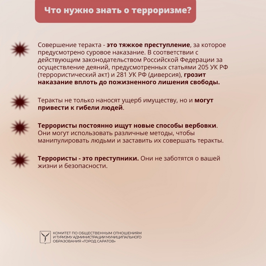 Жителям Саратова необходимо соблюдать меры антитеррористической безопасности в интернет-ресурсах и общественных местах. О правилах напомнили в администрации города.