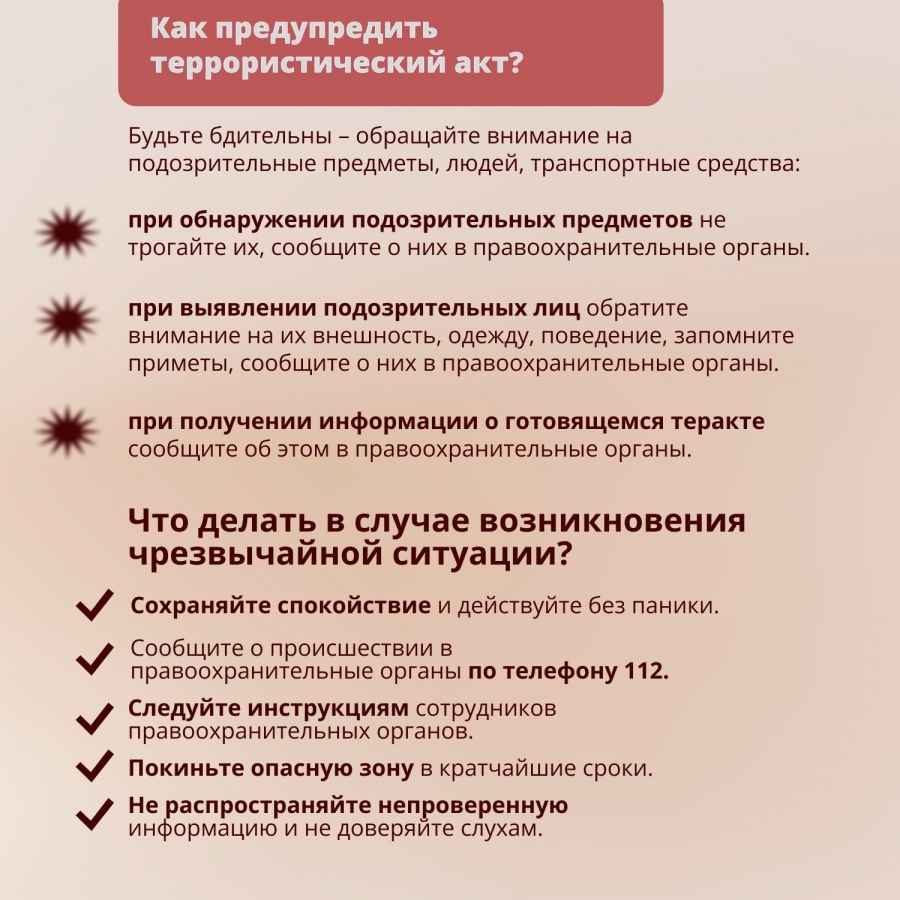 Если неизвестные предлагают деньги за поджог или другое преступление, важно сразу рассказать об этом правоохранителям. Кроме того, обращаться к силовикам необходимо при обнаружении подозрительных предметов или лиц в общественных местах. О других мерах читайте на карточках выше.
