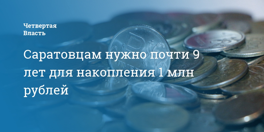 Жителям Саратовской области потребуется порядка 9 лет, чтобы накопить 1 млн рублей. Такие данные приводятся в рейтинге, составленном «РИА Новости».