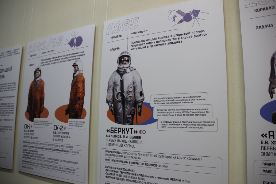 Также на выставке представлена одежда для работ на орбитальных станциях и тренировочно-нагрузочные костюмы – специальная одежда, чтобы минимизировать негативное воздействие невесомости на организм.