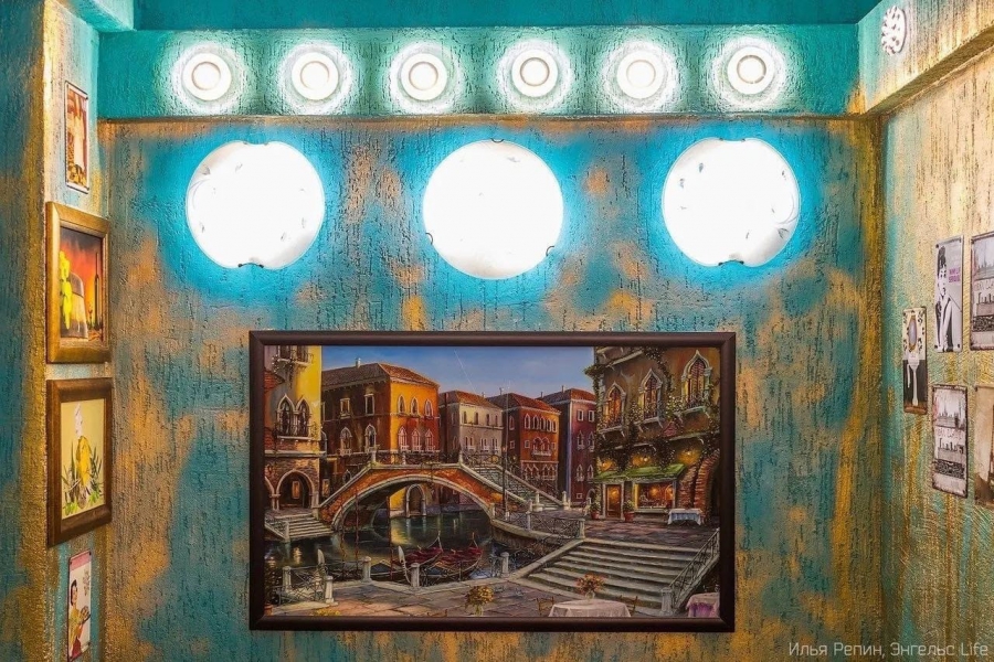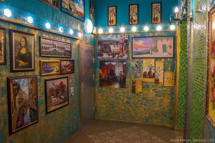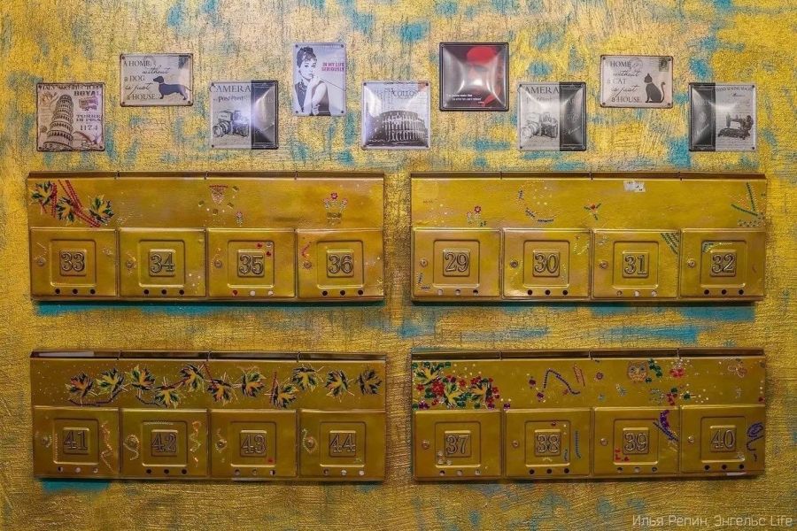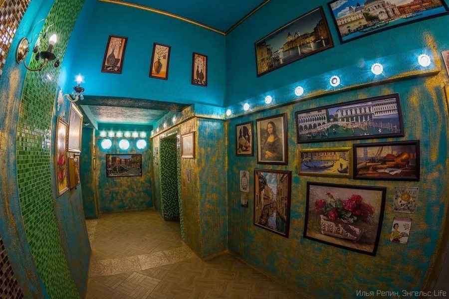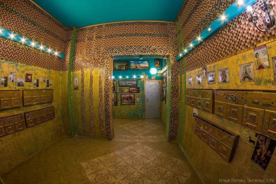 «Картинная галерея» с бирюзово-золотыми стенами находится в доме № 26 по улице Тельмана в Энгельсе. Помещение хорошо освещено, стены украшены элегантными бра в виде свечей и настенными светильниками. Стены же завешаны репродукциями знаменитых художников, видами Рима, Венеции, Парижа и фотографиями знаменитостей, например, Одри Хепберн. Почтовые ящики также выкрашены золотой краской и облеплены стразами.