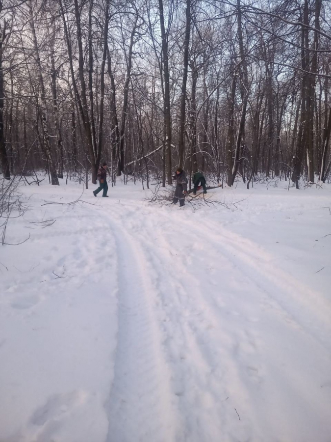 Сейчас сотрудники заповедника чистят территорию лесопарка и срезают сухие ветки.