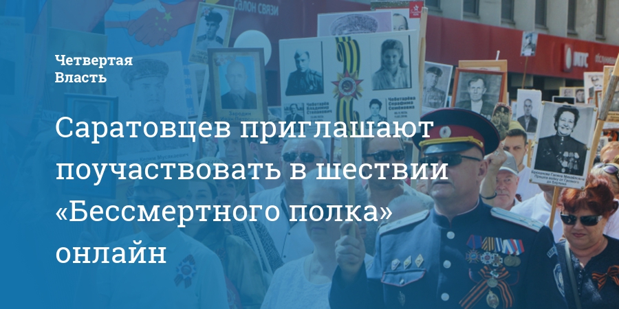 Саратовцев приглашают принять участие в шествии «Бессмертного полка», который пройдет в режиме онлайн. Об этом сообщает телеграм-канал «Время Саратовское. Официально».