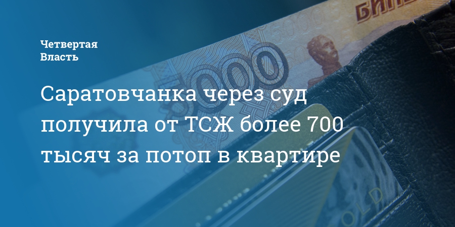 Саратовчанка через суд получила от ТСЖ более 700 тысяч за потоп в квартире