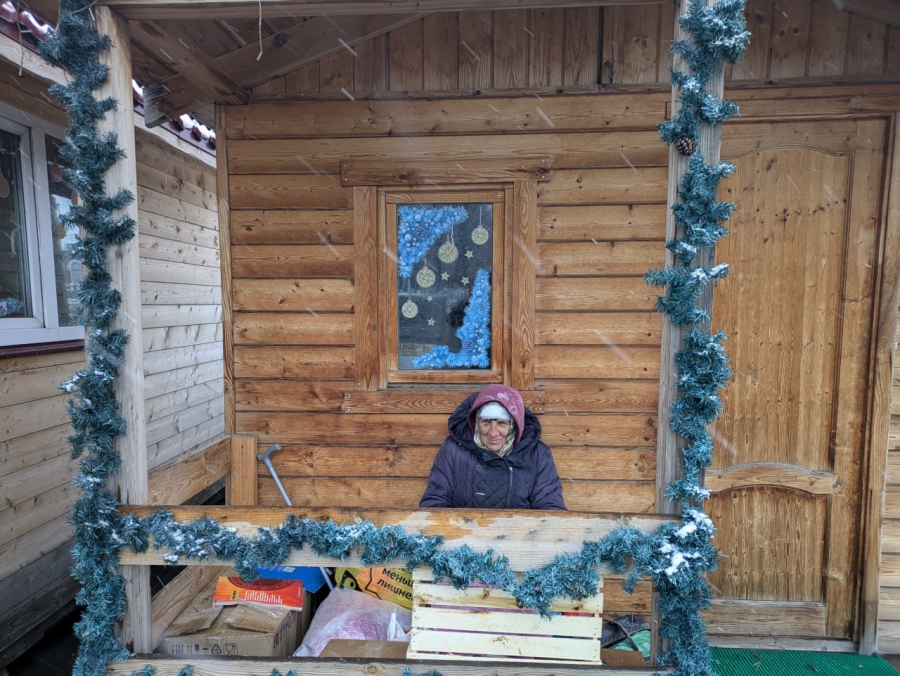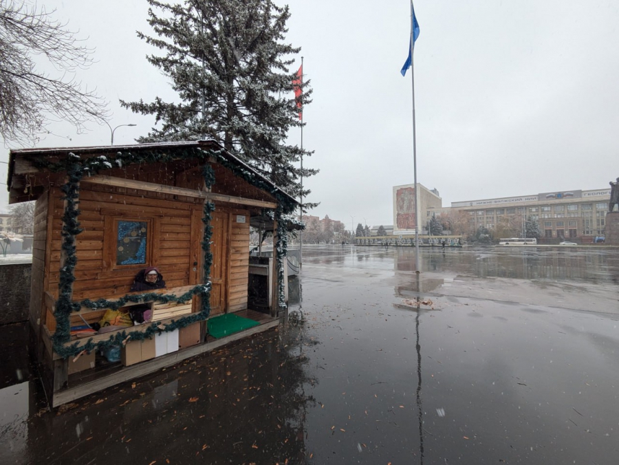 «Вчера вновь подходил к престарелой женщине Людмиле Цыбизовой, которая нашла себе обитель на Театральной площади. Она по-прежнему сидит и спит на крыльце дома Деда Мороза. От мокрого снега, который валил вчера весь день, едва помогает козырек здания. От холода спасает плед, подаренный сердобольными людьми. А скоро морозы», - написал Рогожин.