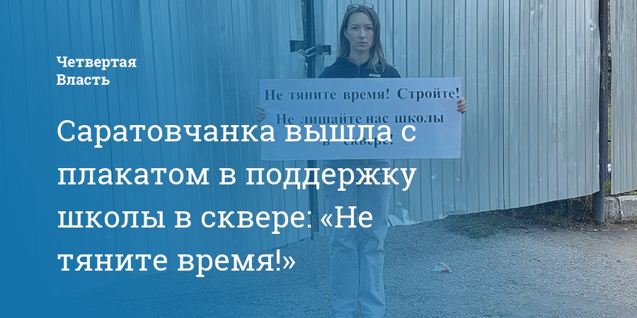 Саратовчанка вышла с плакатом в поддержку школы в сквере: «Не тяните время!»