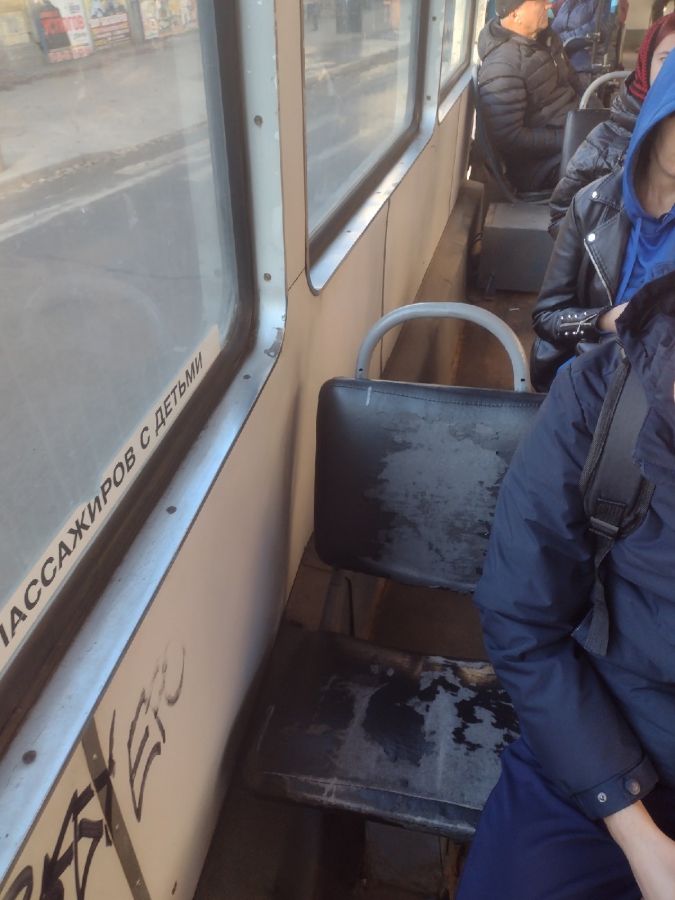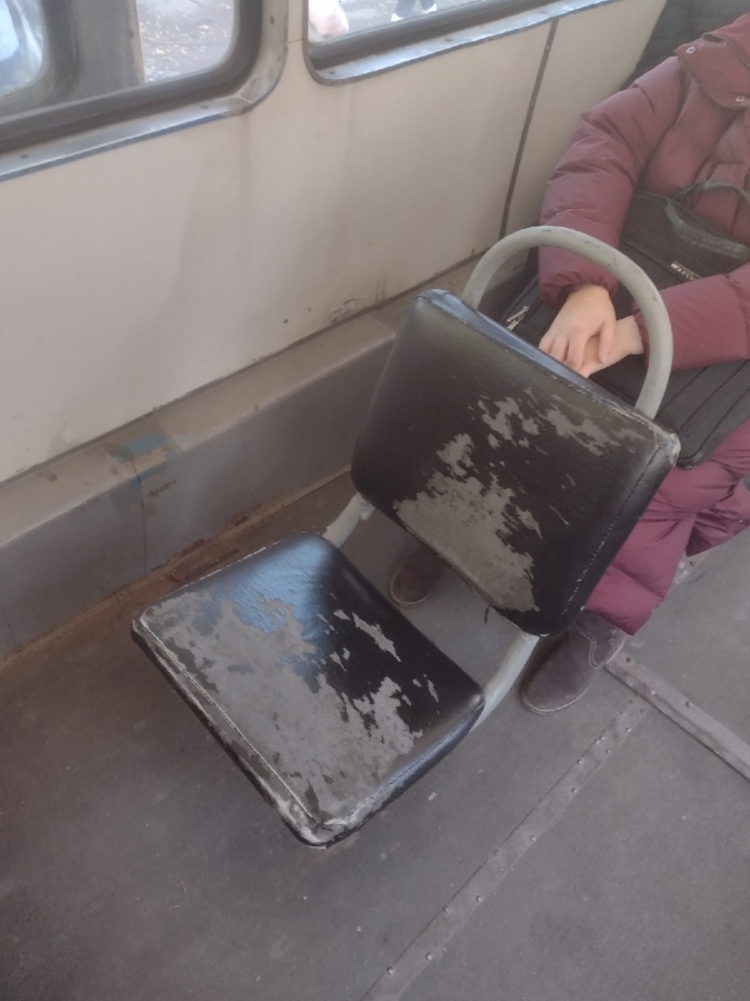 По ее словам, вагон трамвая маршрута №3 (Мирный переулок – 6-я Дачная) не отличается чистотой. Женщина обратила внимание на грязь в салоне и старые сиденья. Ее также удивило отсутствие половины сидячих мест.