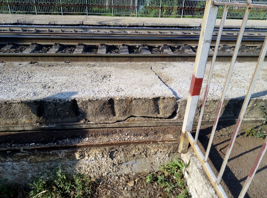 Читатель рассказал корреспонденту «4В», что на бетонных платформах станции зияют дыры и видны трещины. В некоторых местах их замазали, но этого явно недостаточно. Кроме того, пассажирам тяжело забираться на саму платформу, она расположена слишком высоко.