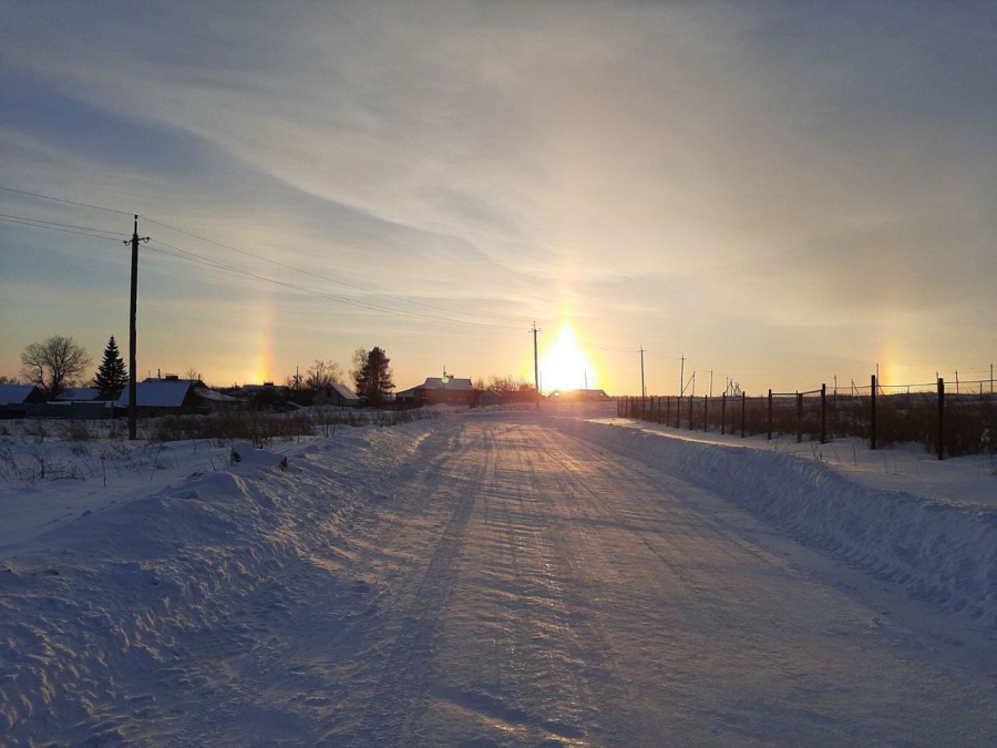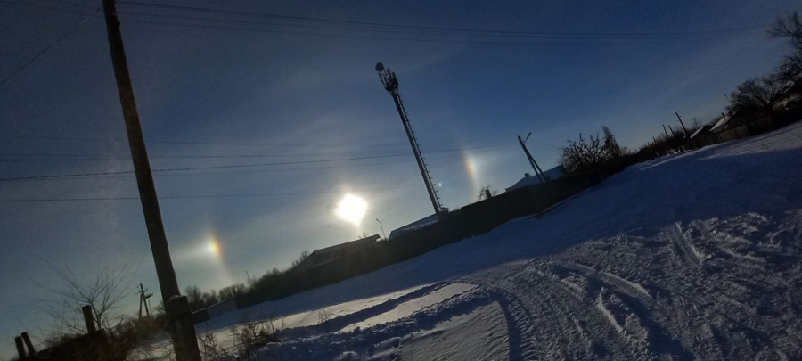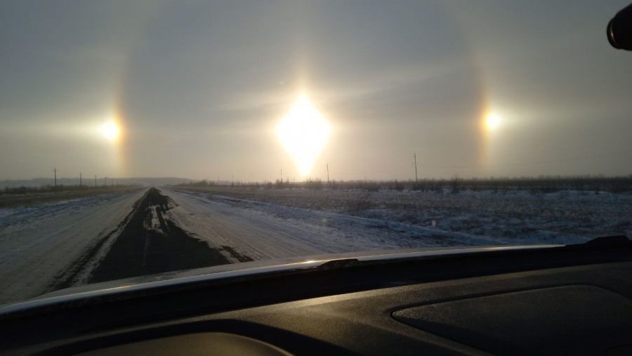 Гало – это природное явление, которое проявляется в виде светящейся окружности вокруг солнца или луны. Это происходит из-за отражения и преломления света в атмосферных кристаллах льда. Гало часто наблюдается во время определенных погодных условий, таких как облака, содержащие кристаллы льда, и мороз. Создается красивый оптический эффект, будто в небе сразу три солнца. В народе явление прозвали «зимней радугой».