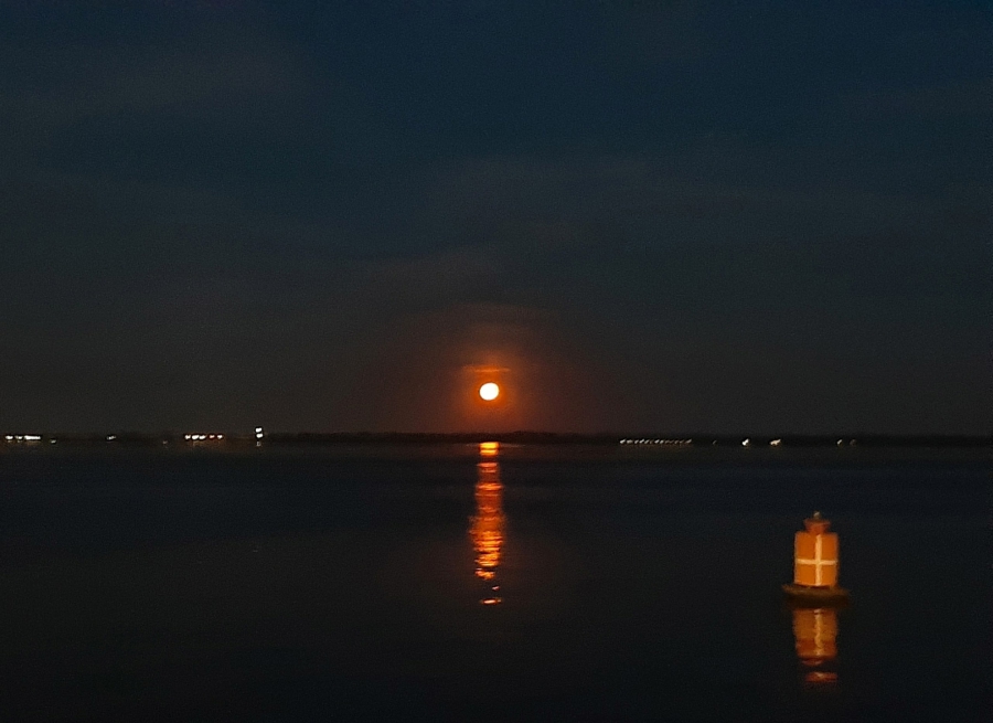 Суперлуние - это феномен, когда полнолуние совпадает с ближайшей точкой орбиты Луны к Земле (перигелий). В это время луна кажется примерно на 14% больше и на 30% ярче, чем обычно. Спутник выглядит крупнее, выразительнее и может иметь различные оттенки: серебристый, кремовый или золотой. Свет Луны отражается на поверхности Земли.