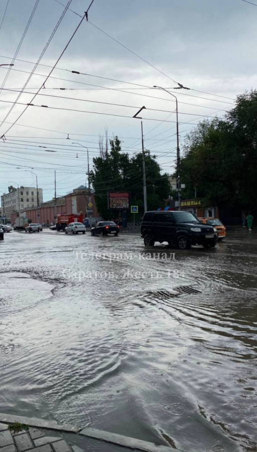 Сегодня, 4 июля, в Саратове сильный дождь затопил дороги и тротуары, из-за чего вода просочилась даже в автобусы. Местные жители в социальных сетях пожаловались, что ливневые канализации не справляются с количеством воды.