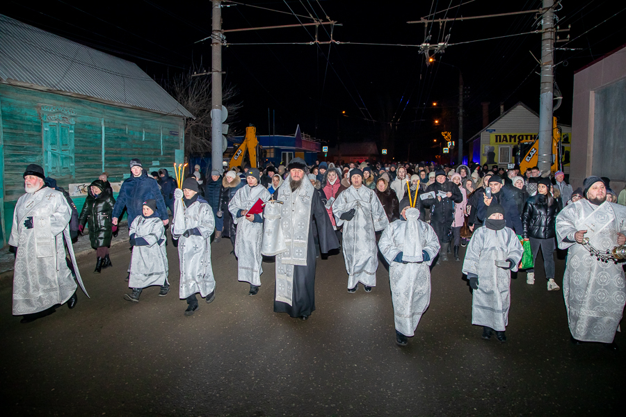Кроме того, сегодня ночью в Энгельсе состоялся крестный ход в честь праздника Крещения. Священнослужители и прихожане прошли от Свято-Троицкого кафедрального собора к набережной Волги. Возглавил шествие епископ Покровский и Новоузенский Пахомий.
