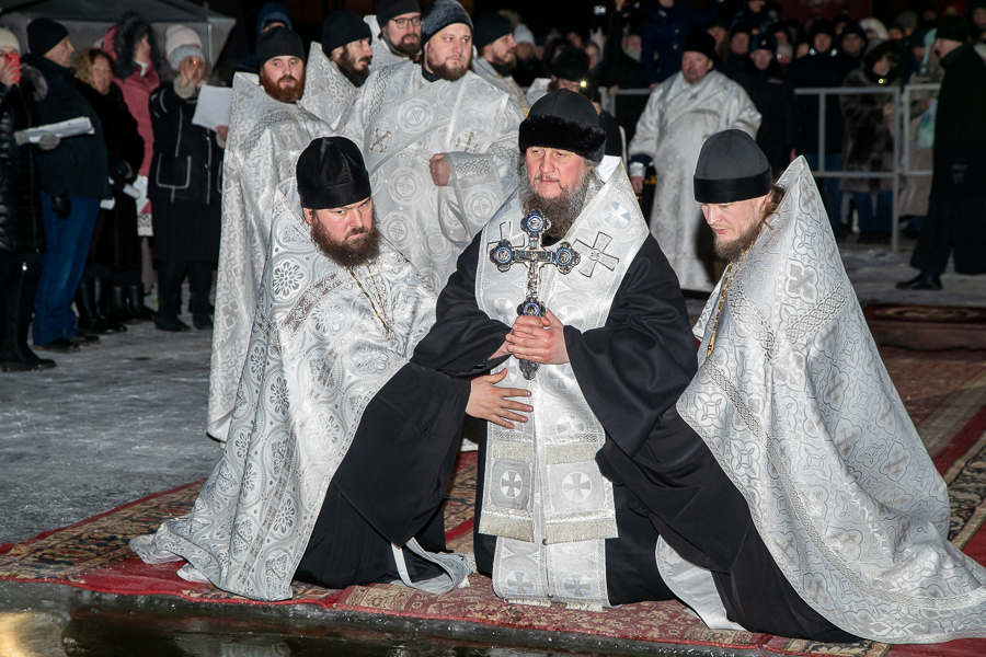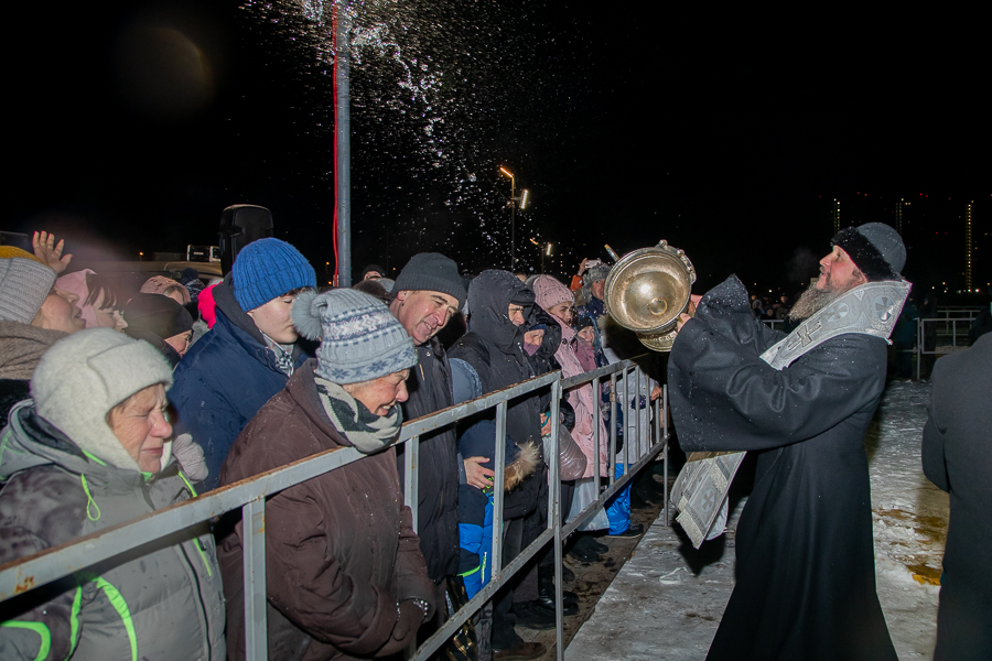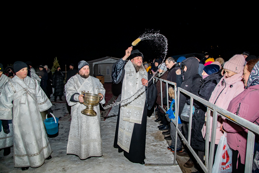 У специально вырубленной проруби с ледяным распятием – «иордани» – владыка совершил Чин великого освящения воды. Архипастырь окропил молящихся святой водой и поздравил с праздником Богоявления.