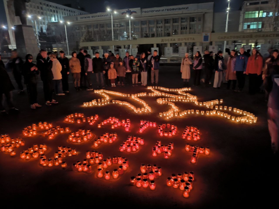 По словам чиновников, молодежь и активисты приняли участие во всероссийской акции «Журавли». Так, на Театральной площади они выложили из свечей изображение журавлей в знак всеобщей скорби о жертвах кровавых событий в Подмосковье. Судя по фотографиям, свечи поставили в форме трех журавлей, стремящихся вверх, а также надписи: «Саратов скорбит 22.03.2024». То же саратовцы сделали и у монумента «Журавли» в парке Победы на Соколовой горе.
