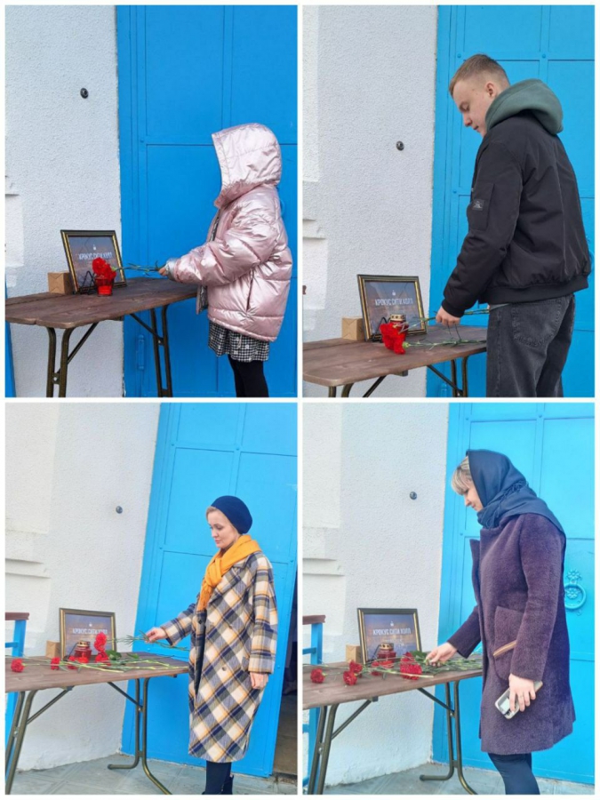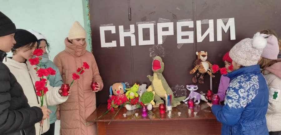 Ни одна область не осталась безучастна к всеобщему горю. В селах и малых городах у домов культуры, храмов люди приносят игрушки, гвоздики и выкладывают изображения журавлей – символом памяти о погибших в теракте.