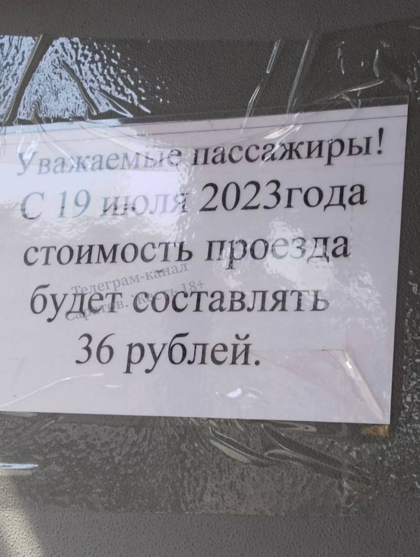 В Саратове местных жителей возмутило намерение поднять стоимость проезда в одной из маршруток до 36 рублей. Фотографию опубликовал очевидец в телеграм-канале «Саратов Жесть 18+».