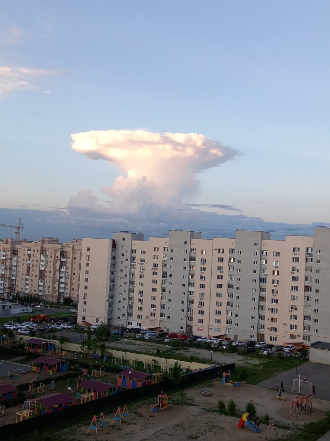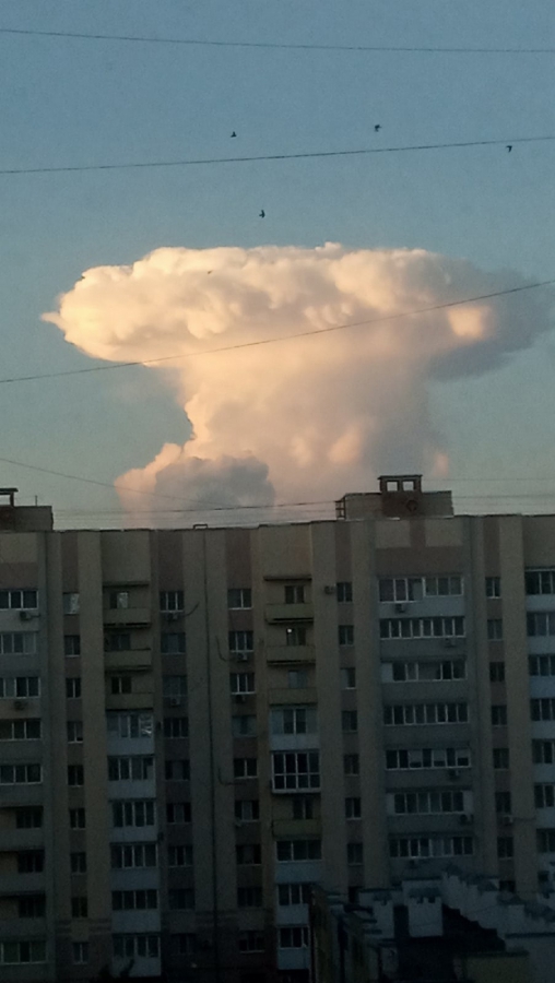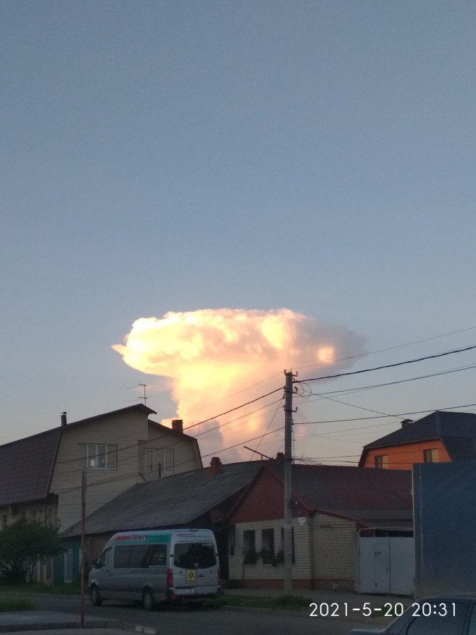 Вчера вечером, 20 мая, жители Саратова наблюдали грибовидное бело-желтое облако, которое некоторым напомнило вид после ядерного взрыва. Горожане активно делились в соцсетях фотографиями этого явления.