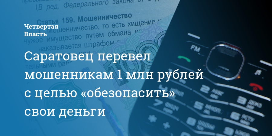 Саратовец перевел мошенникам 1 млн рублей с целью «обезопасить» свои деньги