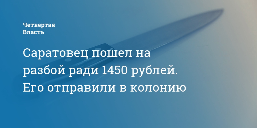 В связи с этим по факту разбоя возбуждено уголовное дело (часть 2 статьи 162 УК РФ). Суд приговорил его к 4 годам лишения свободы с отбыванием в исправительной колонии общего режима. Саратовец попытался отменить решение, указывая на чрезмерную суровость наказания, но облсуд отказал ему.