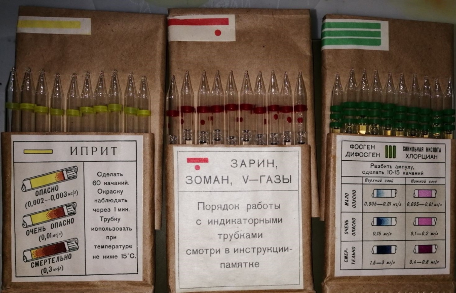 Отметим, что индикаторные трубки необходимы для контроля вредных химических веществ (паров, фосгена, дифосгена, синильной кислоты, хлорциана) на местности, в воздухе, промышленных выбросах, вооружении, технике).