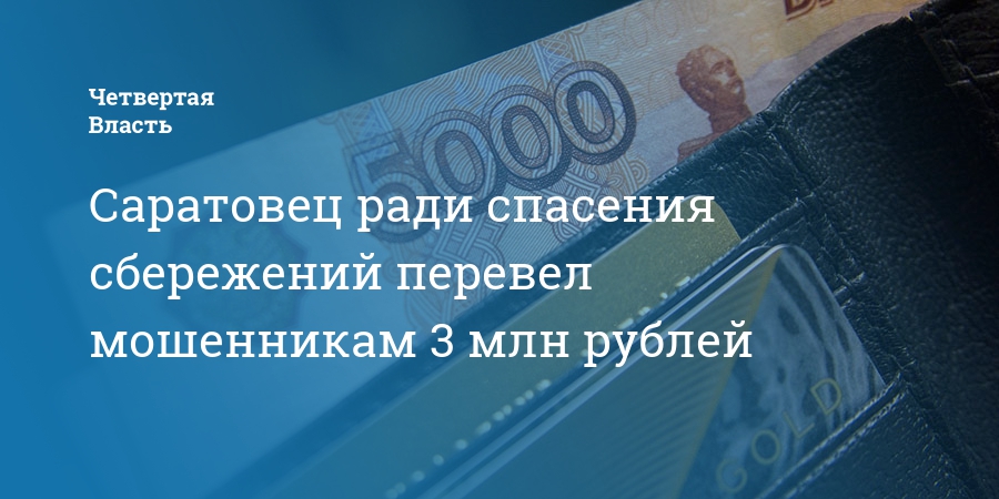 Саратовец ради спасения сбережений перевел мошенникам 3 млн рублей