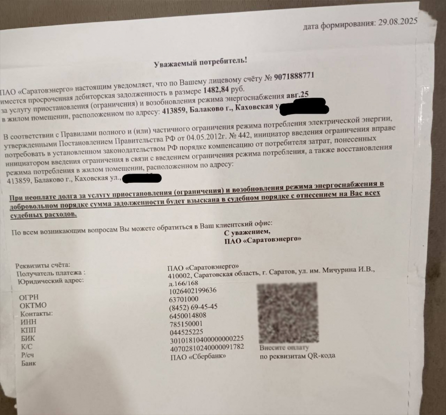В Саратовской области граждане получают квитанции от «Саратовэнерго» с несуществующим долгом за услугу. Такой информацией поделилась одна из местных жительниц в телеграм-канале и группе ВК «Типичный Балаково».