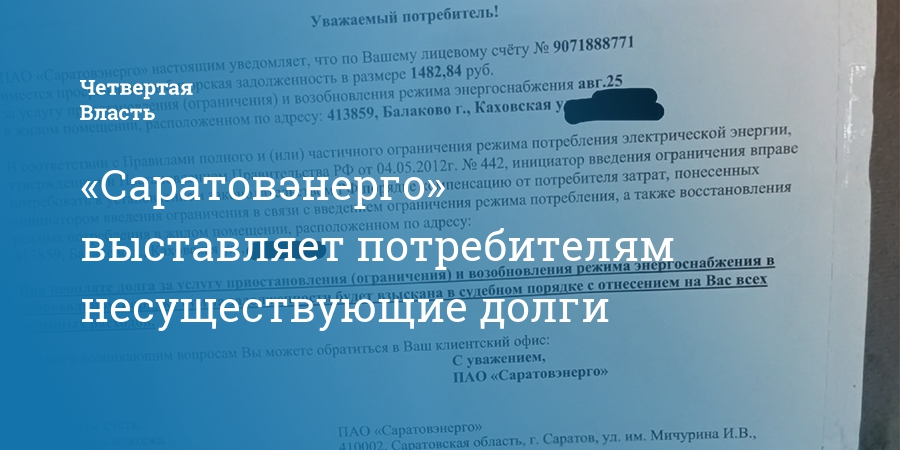 «Саратовэнерго» выставляет потребителям несуществующие долги