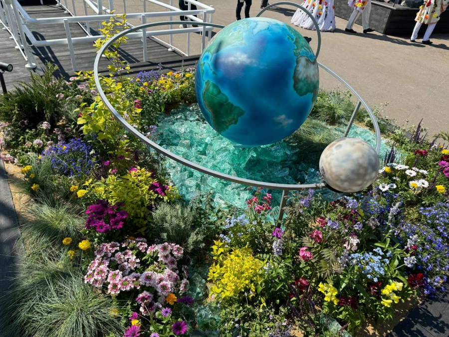 Цветочная композиция региона воплотила в себе уникальное сочетание степных и волжских мотивов, где космические просторы и волжские пейзажи сливались в единую картину. Глубокие сине-фиолетовые цвета создавали образ бескрайнего космоса, а яркие степные соцветия, рассыпанные по клумбе, олицетворяли звезды.
