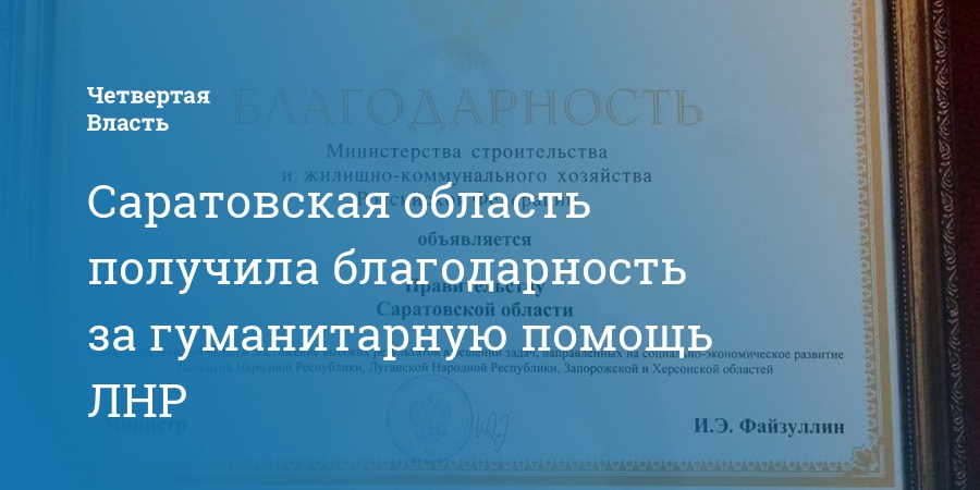 Саратовская область получила благодарность за гуманитарную помощь ЛНР