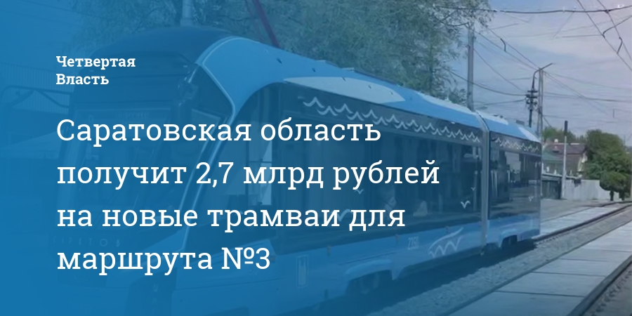 Для Саратовской области выделят 2,7 млрд рублей для приобретения новых трамваев для маршрута №3 (6-я Дачная - Мирный переулок). Об этом сообщают сторонники председателя Госдумы Вячеслава Володина в своих социальных сетях.