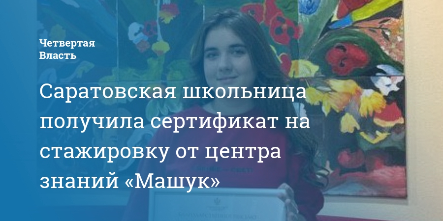 Саратовская школьница получила сертификат на стажировку от центра знаний «Машук»